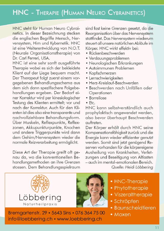 hnc ist eine junge Methode und eine Kombination von verschiedenen Therapieformen. Vorwiegend sind dies: